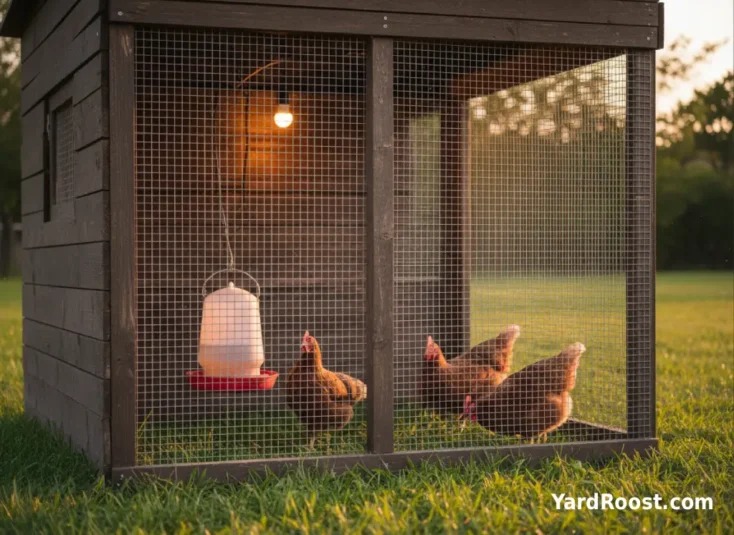 Chicks also need correct brooder warmth so they’ll eat and drink steadily. A common extension guideline is about 90–95°F at chick level for week 1, then reduce about 5°F per week as they grow (always watch chick behavior and use a thermometer at chick level).