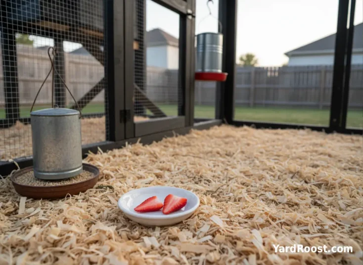 Editorial note: A common mistake we see is tossing fruit straight onto wet bedding “because it’s natural.” That’s how you end up with rot, gnats, and a run that smells like fermenting jam. Extension guidance warns against letting scraps rot due to risks like botulism and general illness from spoiled material.
