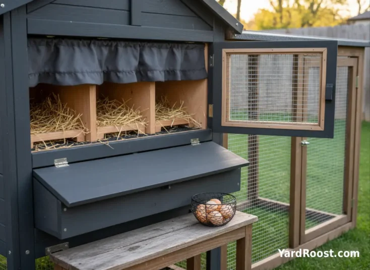 - Fix nest box access. Close gaps behind boxes and along the coop wall. Add a nest curtain to reduce visibility and discourage nighttime snooping.